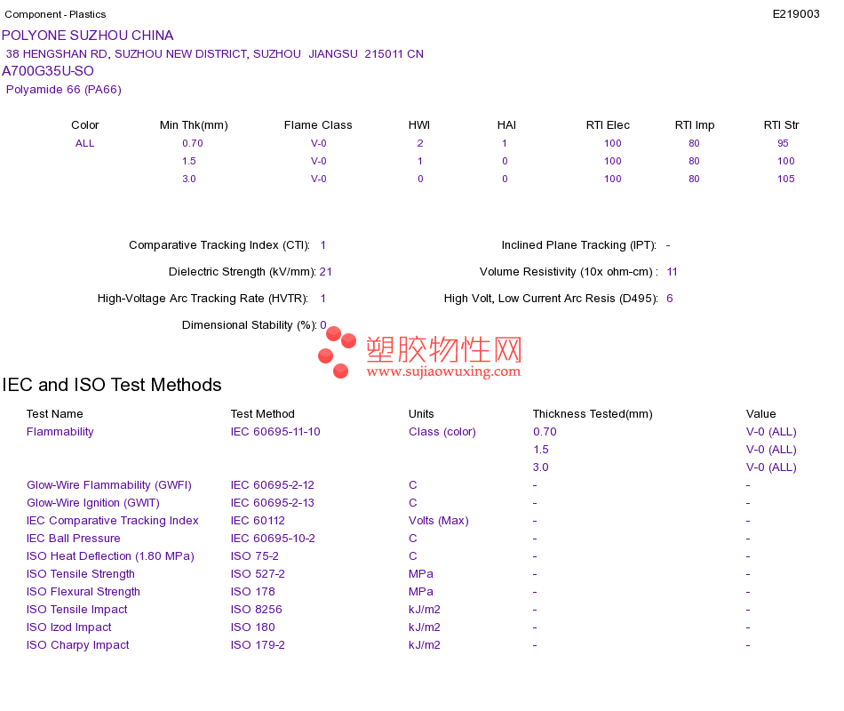 Polyamide 66 (PA66) A700G35U-SOUL黄卡资料请登陆会员后查看,如需电子档资料,请联系客服! 赵生:手机13424755533;QQ:27660005