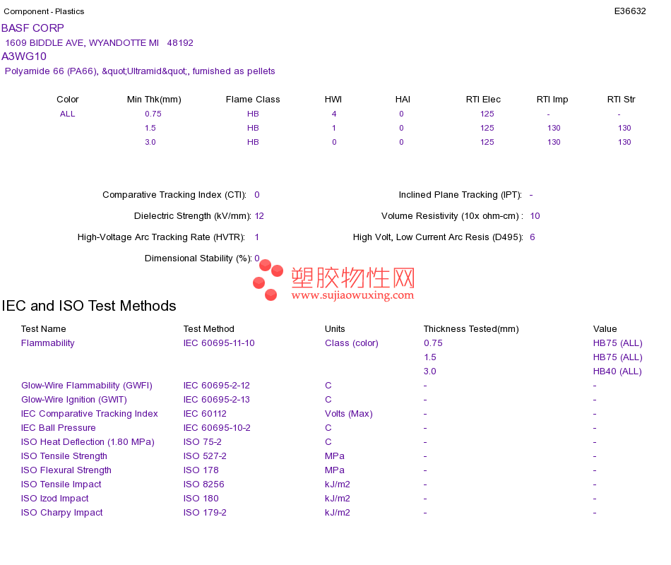 Polyamide 66 (PA66) A3WG10UL黄卡资料请登陆会员后查看,如需电子档资料,请联系客服! 赵生:手机13424755533;QQ:27660005