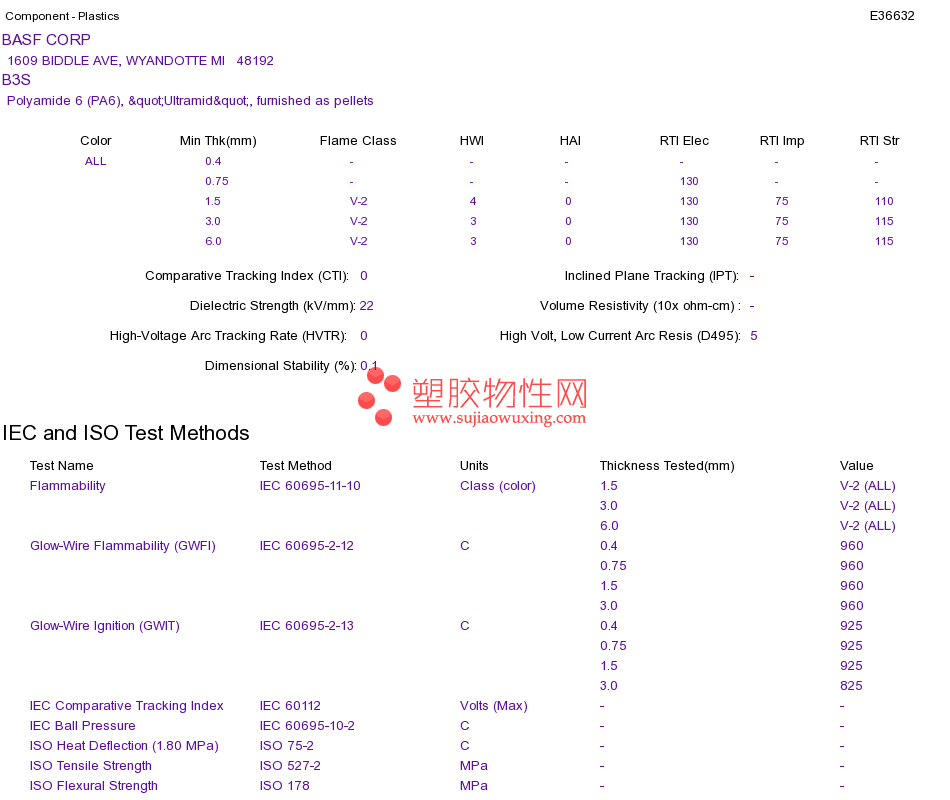 Polyamide 6 (PA6) B3SUL黄卡资料请登陆会员后查看,如需电子档资料,请联系客服! 赵生:手机13424755533;QQ:27660005