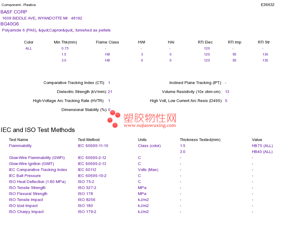 Polyamide 6 (PA6) BG40G6UL黄卡资料请登陆会员后查看,如需电子档资料,请联系客服! 赵生:手机13424755533;QQ:27660005