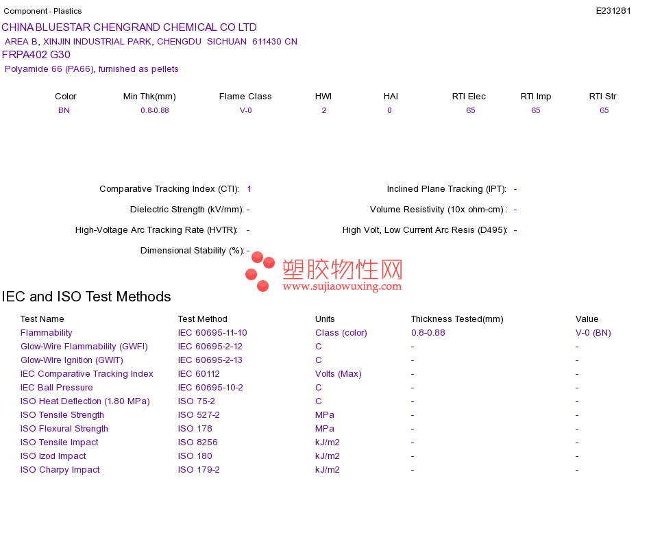 Polyamide 66 (PA66) FRPA402 G30UL黄卡资料请登陆会员后查看,如需电子档资料,请联系客服! 赵生:手机13424755533;QQ:27660005