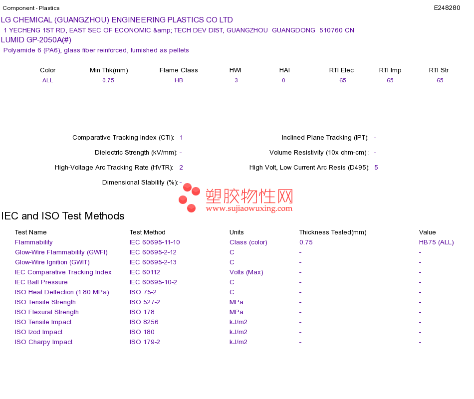 Polyamide 6 (PA6) LUMID GP-2050A(#)UL黄卡资料请登陆会员后查看,如需电子档资料,请联系客服! 赵生:手机13424755533;QQ:27660005
