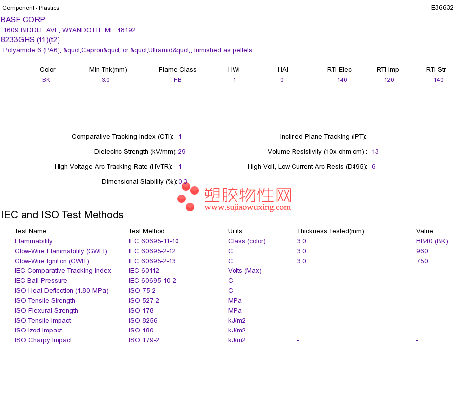 Polyamide 6 (PA6) 8233GHS (f1)(t2)UL黄卡资料请登陆会员后查看,如需电子档资料,请联系客服! 赵生:手机13424755533;QQ:27660005