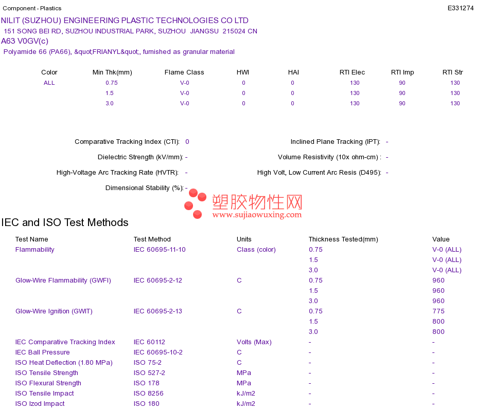 Polyamide 66 (PA66) A63 V0GV(c)UL黄卡资料请登陆会员后查看,如需电子档资料,请联系客服! 赵生:手机13424755533;QQ:27660005
