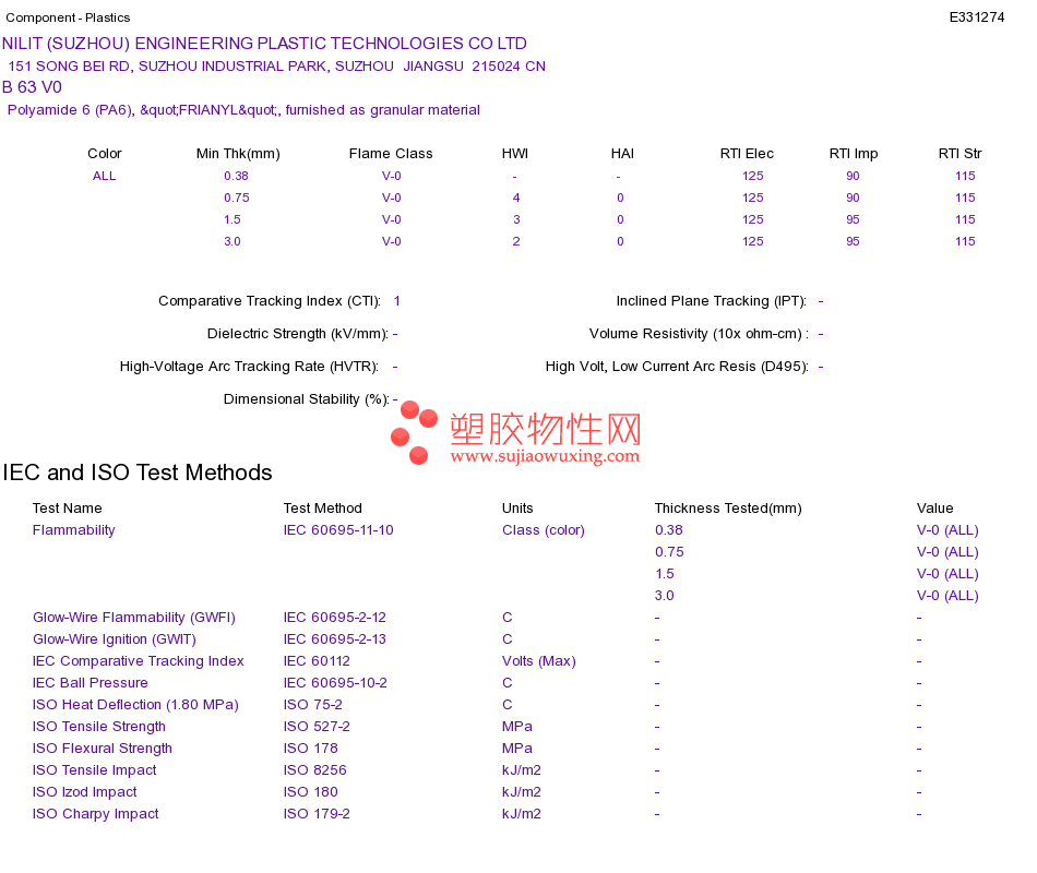 Polyamide 6 (PA6) B 63 V0UL黄卡资料请登陆会员后查看,如需电子档资料,请联系客服! 赵生:手机13424755533;QQ:27660005