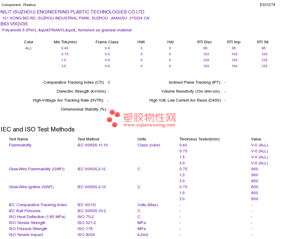 Polyamide 6 (PA6) B63 V0GV35UL黄卡资料请登陆会员后查看,如需电子档资料,请联系客服! 赵生:手机13424755533;QQ:27660005
