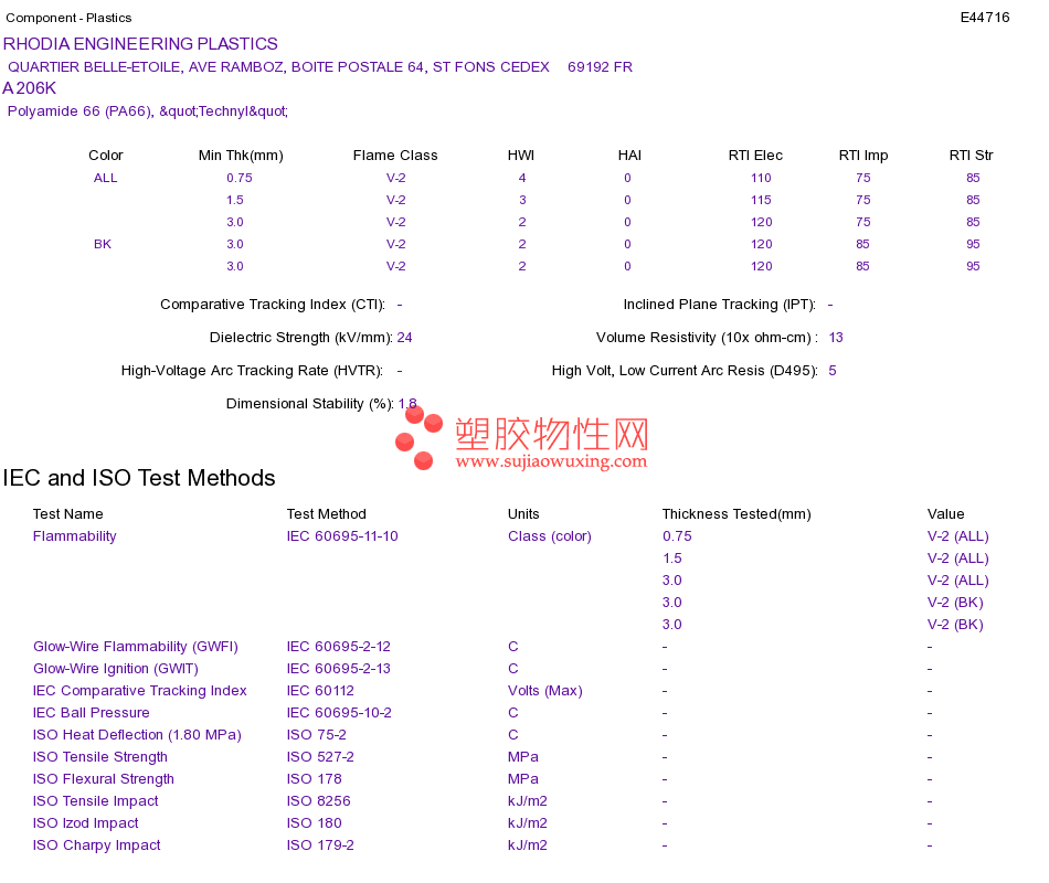 Polyamide 66 (PA66) A 206KUL黄卡资料请登陆会员后查看,如需电子档资料,请联系客服! 赵生:手机13424755533;QQ:27660005