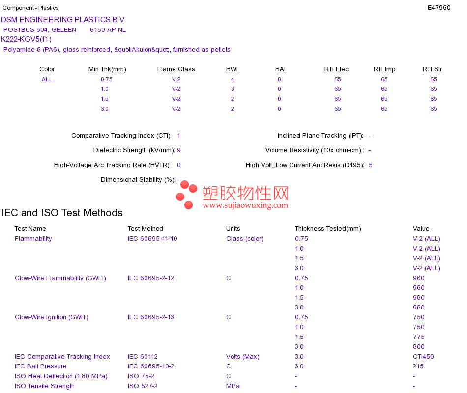 Polyamide 6 (PA6) K222-KGV5(f1)UL黄卡资料请登陆会员后查看,如需电子档资料,请联系客服! 赵生:手机13424755533;QQ:27660005
