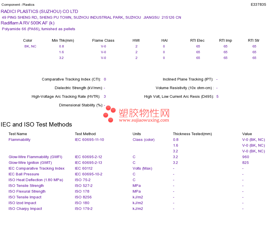 Polyamide 66 (PA66) Radiflam A RV 500K AF (k)UL黄卡资料请登陆会员后查看,如需电子档资料,请联系客服! 赵生:手机13424755533;QQ:27660005