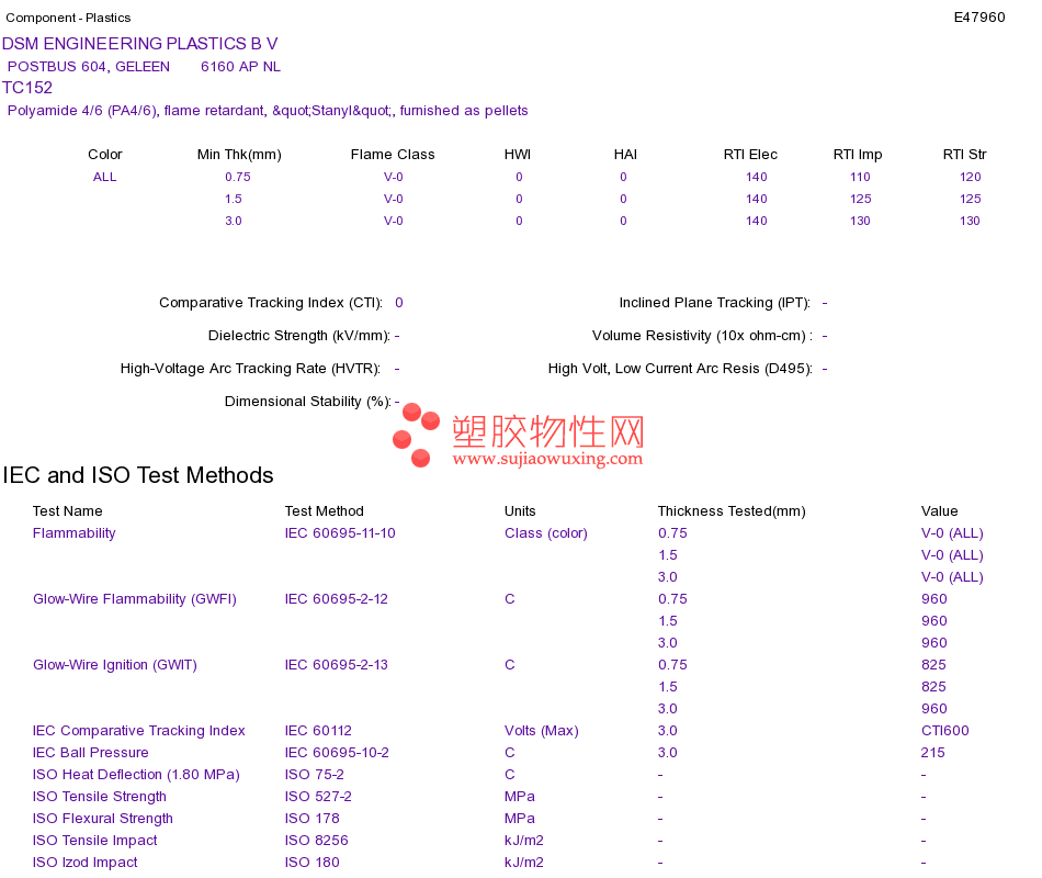 Polyamide 4/6 (PA4/6) TC152UL黄卡资料请登陆会员后查看,如需电子档资料,请联系客服! 赵生:手机13424755533;QQ:27660005