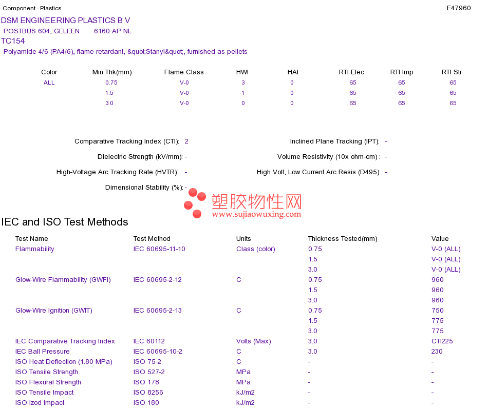 Polyamide 4/6 (PA4/6) TC154UL黄卡资料请登陆会员后查看,如需电子档资料,请联系客服! 赵生:手机13424755533;QQ:27660005