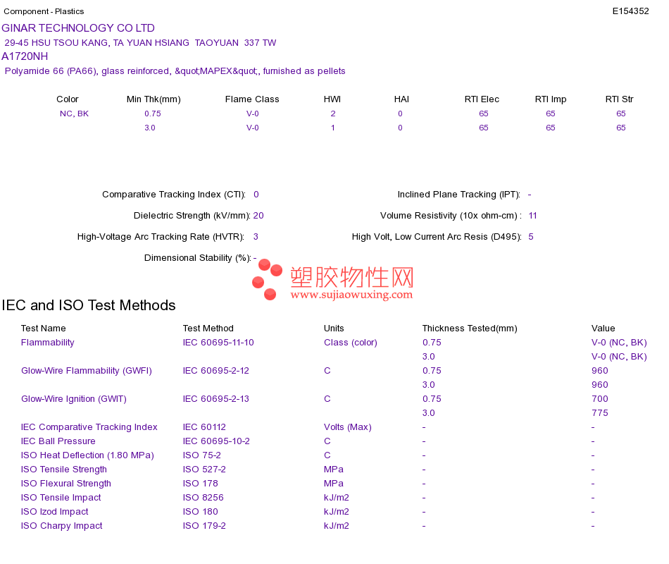 Polyamide 66 (PA66) A1720NHUL黄卡资料请登陆会员后查看,如需电子档资料,请联系客服! 赵生:手机13424755533;QQ:27660005