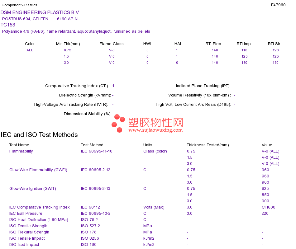 Polyamide 4/6 (PA4/6) TC153UL黄卡资料请登陆会员后查看,如需电子档资料,请联系客服! 赵生:手机13424755533;QQ:27660005