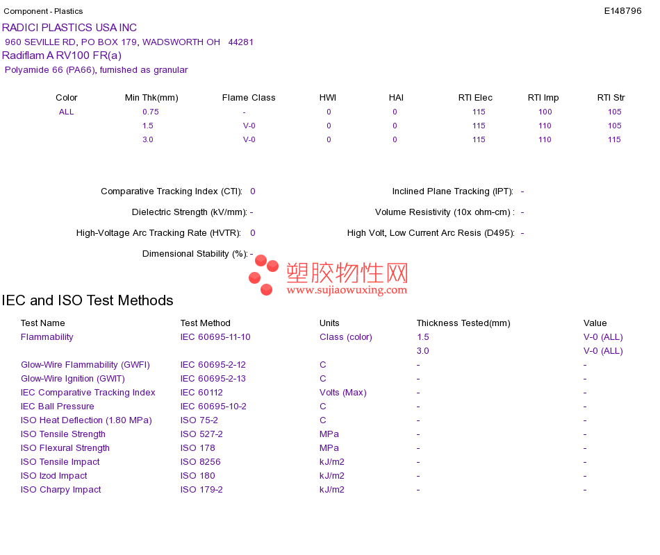 Polyamide 66 (PA66) Radiflam A RV100 FR(a)UL黄卡资料请登陆会员后查看,如需电子档资料,请联系客服! 赵生:手机13424755533;QQ:27660005