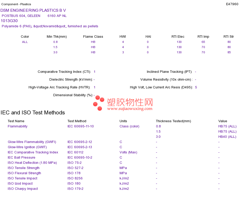 Polyamide 6 (PA6) 1013G30UL黄卡资料请登陆会员后查看,如需电子档资料,请联系客服! 赵生:手机13424755533;QQ:27660005