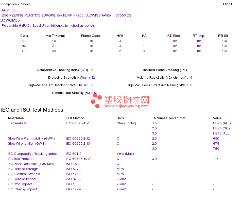 Polyamide 6 (PA6) B3WGM35UL黄卡资料请登陆会员后查看,如需电子档资料,请联系客服! 赵生:手机13424755533;QQ:27660005