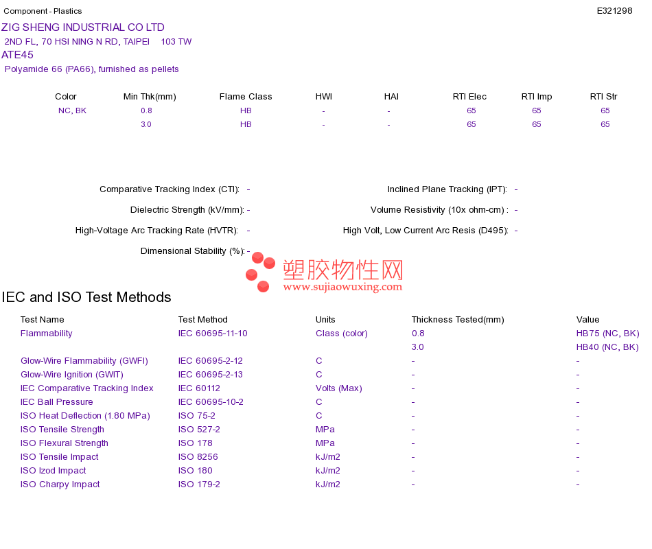 Polyamide 66 (PA66) ATE45UL黄卡资料请登陆会员后查看,如需电子档资料,请联系客服! 赵生:手机13424755533;QQ:27660005