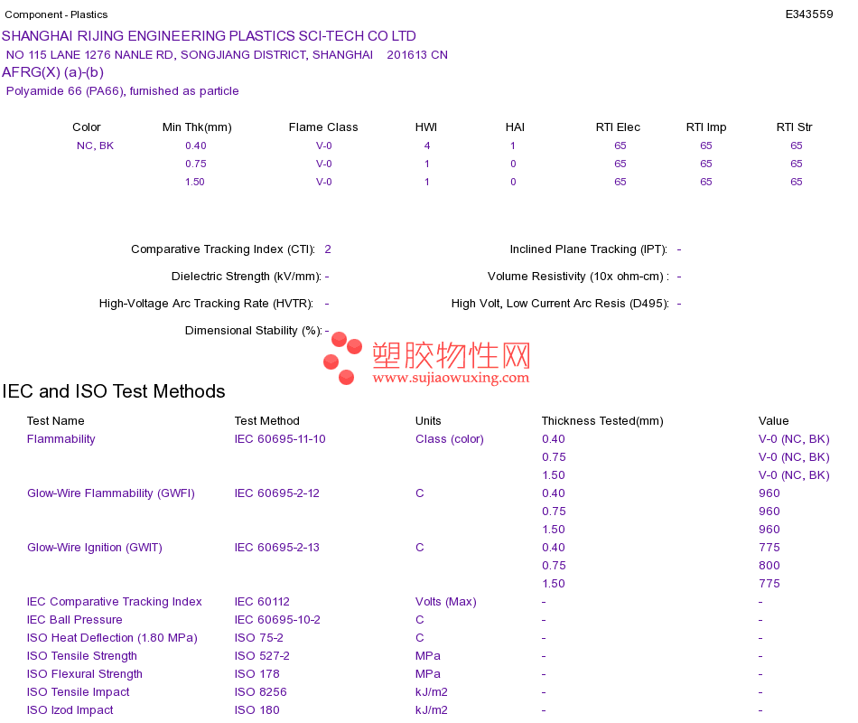 Polyamide 66 (PA66) AFRG(X) (a)-(b)UL黄卡资料请登陆会员后查看,如需电子档资料,请联系客服! 赵生:手机13424755533;QQ:27660005