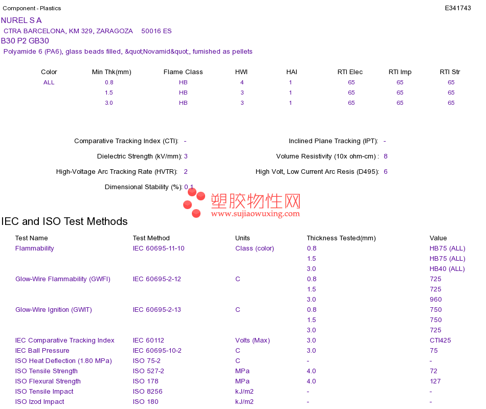 Polyamide 6 (PA6) B30 P2 GB30UL黄卡资料请登陆会员后查看,如需电子档资料,请联系客服! 赵生:手机13424755533;QQ:27660005
