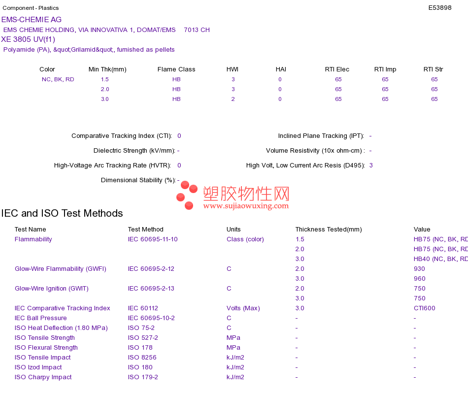 Polyamide (PA) XE 3805 UV(f1)UL黄卡资料请登陆会员后查看,如需电子档资料,请联系客服! 赵生:手机13424755533;QQ:27660005