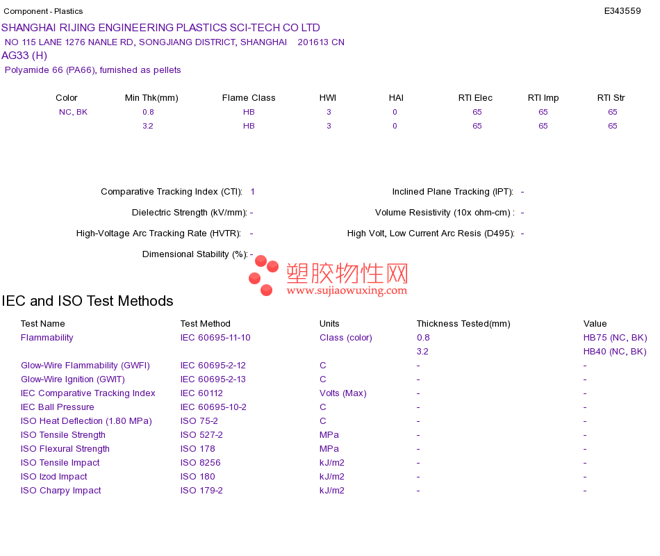 Polyamide 66 (PA66) AG33 (H)UL黄卡资料请登陆会员后查看,如需电子档资料,请联系客服! 赵生:手机13424755533;QQ:27660005
