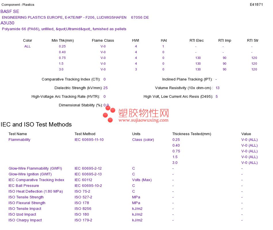Polyamide 66 (PA66) A3U30UL黄卡资料请登陆会员后查看,如需电子档资料,请联系客服! 赵生:手机13424755533;QQ:27660005