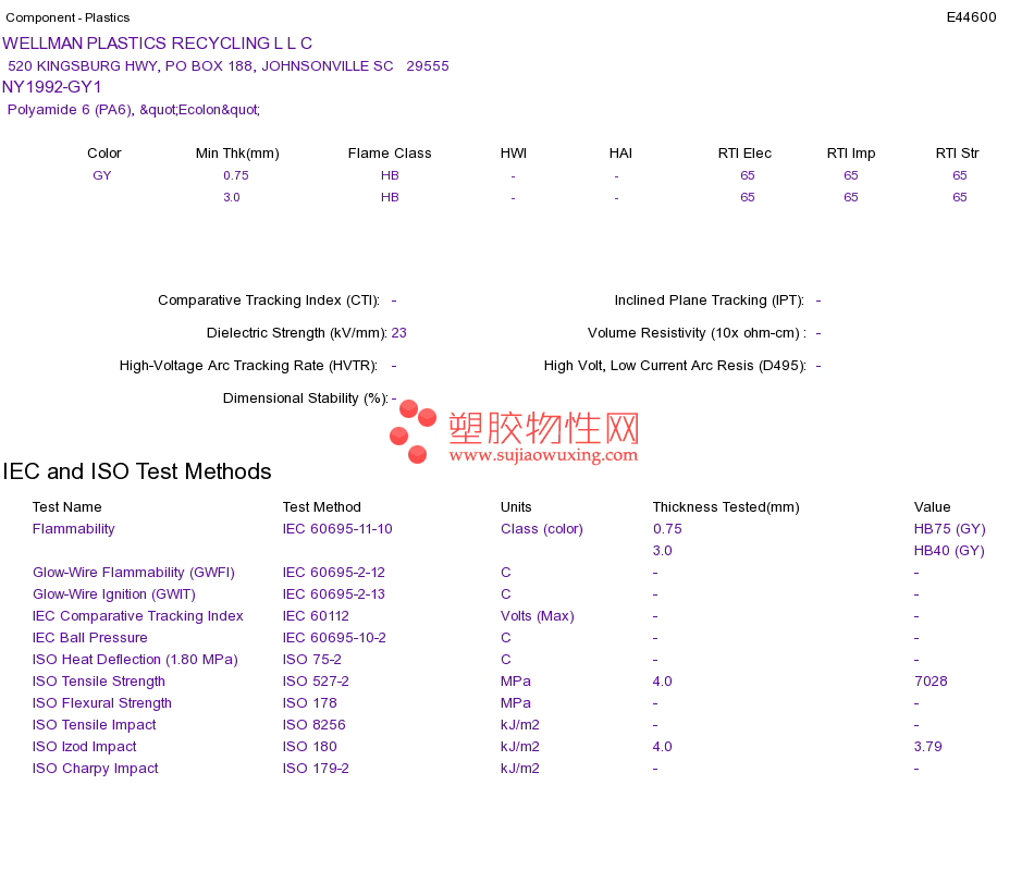 Polyamide 6 (PA6) NY1992-GY1UL黄卡资料请登陆会员后查看,如需电子档资料,请联系客服! 赵生:手机13424755533;QQ:27660005
