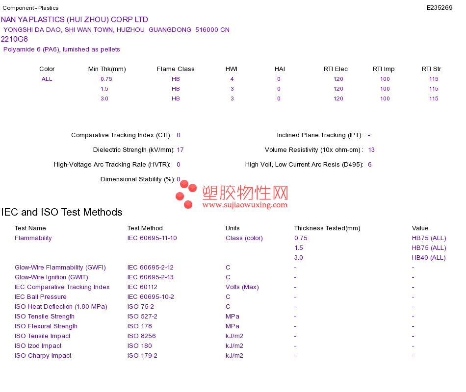 Polyamide 6 (PA6) 2210G8UL黄卡资料请登陆会员后查看,如需电子档资料,请联系客服! 赵生:手机13424755533;QQ:27660005