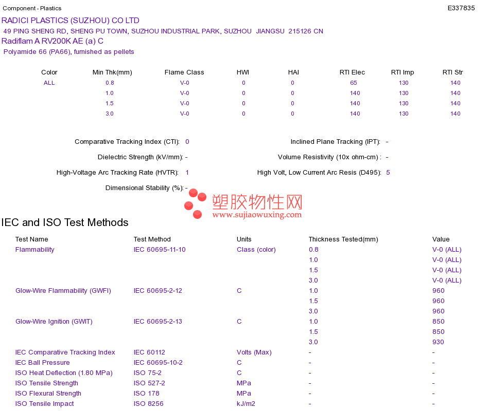Polyamide 66 (PA66) Radiflam A RV200K AE (a) CUL黄卡资料请登陆会员后查看,如需电子档资料,请联系客服! 赵生:手机13424755533;QQ:27660005