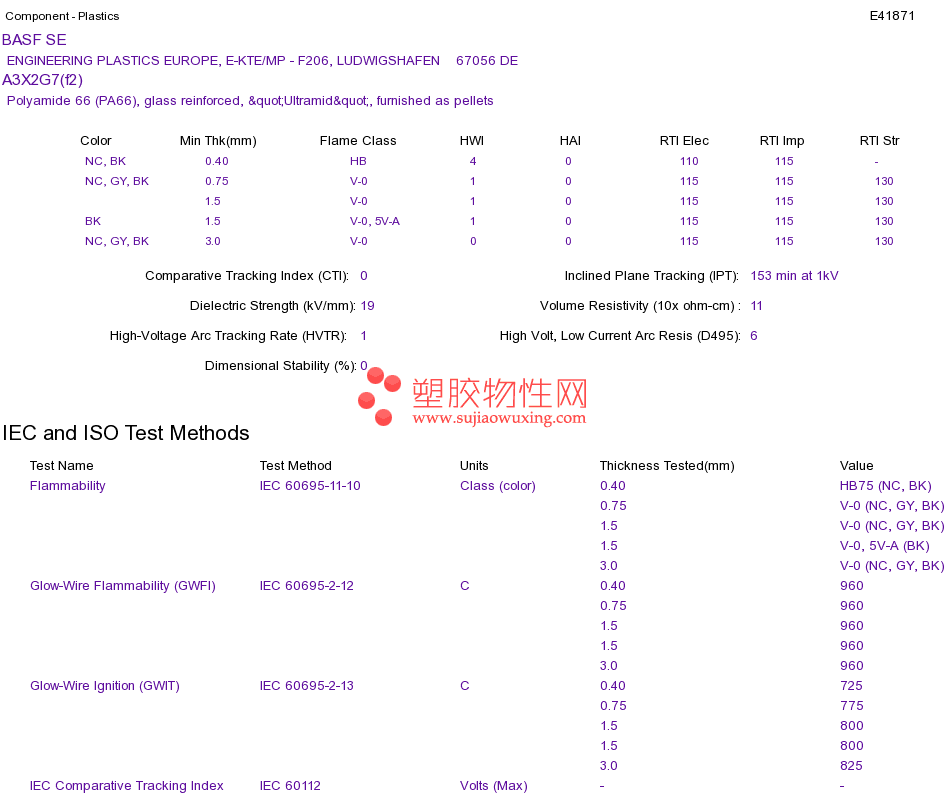 Polyamide 66 (PA66) A3X2G7(f2)UL黄卡资料请登陆会员后查看,如需电子档资料,请联系客服! 赵生:手机13424755533;QQ:27660005