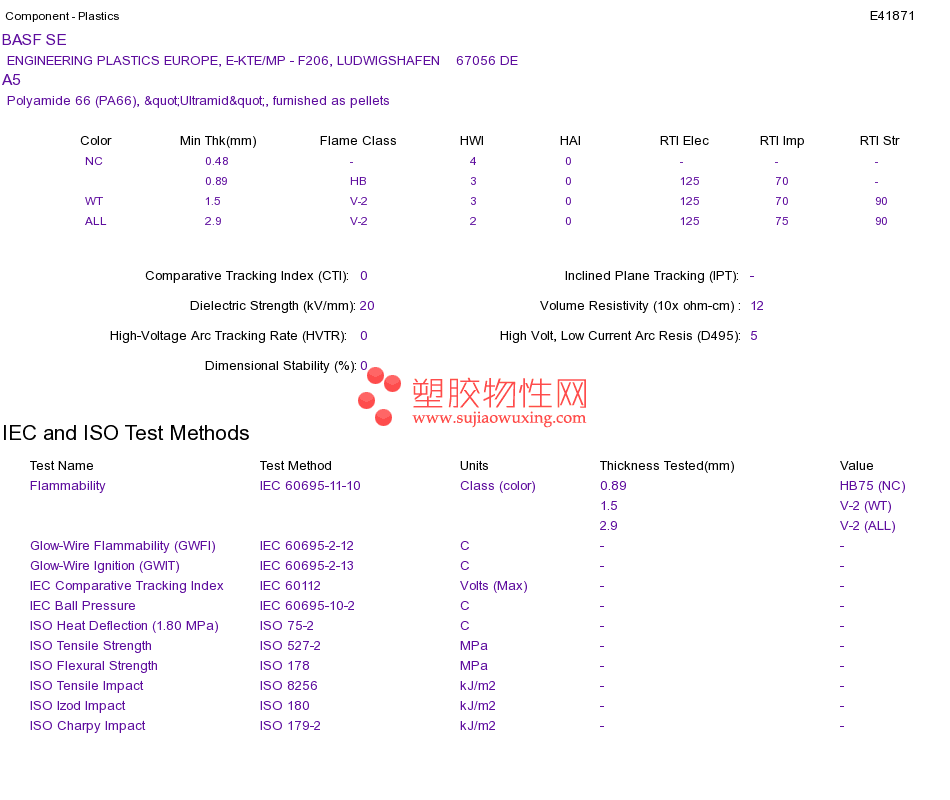 Polyamide 66 (PA66) A5UL黄卡资料请登陆会员后查看,如需电子档资料,请联系客服! 赵生:手机13424755533;QQ:27660005