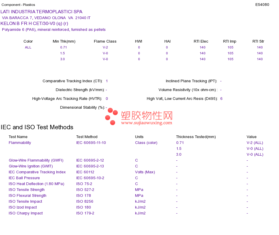 Polyamide 6 (PA6) KELON B FR H CET/30-V0 (q) (r) UL黄卡