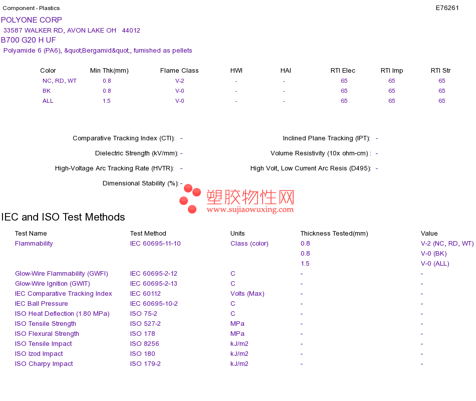 Polyamide 6 (PA6) B700 G20 H UFUL黄卡资料请登陆会员后查看,如需电子档资料,请联系客服! 赵生:手机13424755533;QQ:27660005