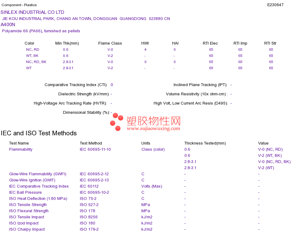 Polyamide 66 (PA66) A400NUL黄卡资料请登陆会员后查看,如需电子档资料,请联系客服! 赵生:手机13424755533;QQ:27660005