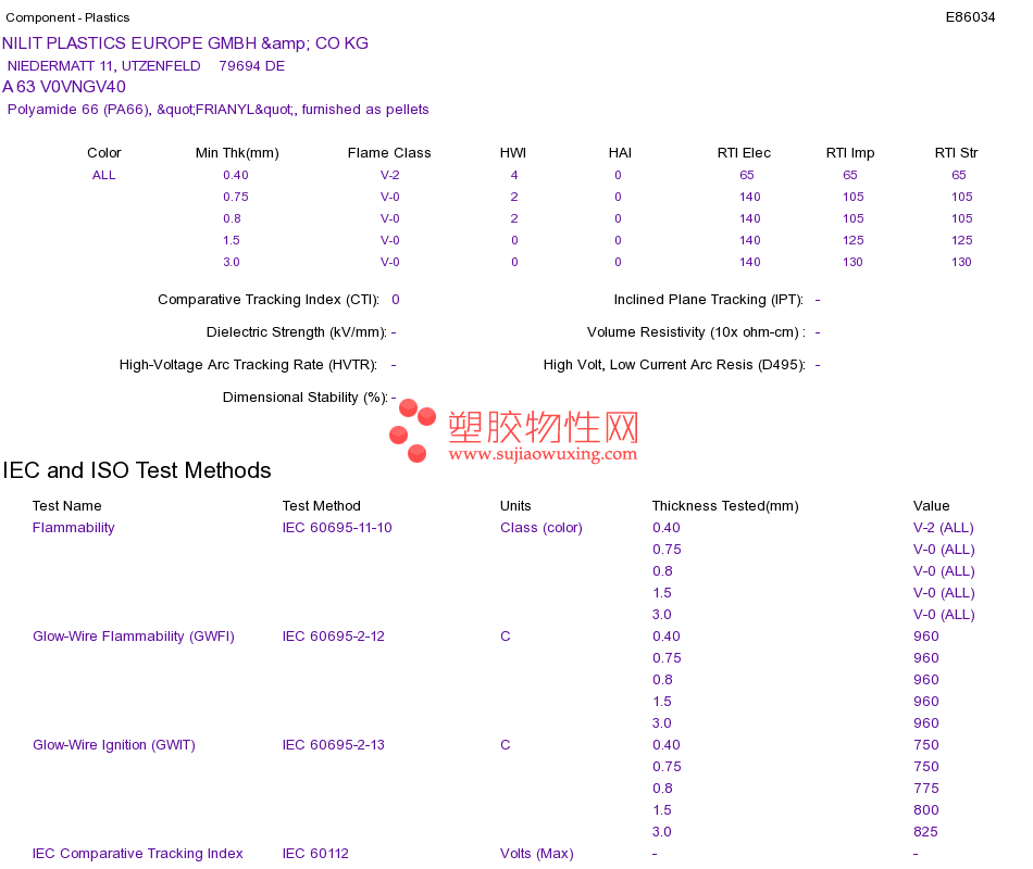 Polyamide 66 (PA66) A 63 V0VNGV40UL黄卡资料请登陆会员后查看,如需电子档资料,请联系客服! 赵生:手机13424755533;QQ:27660005