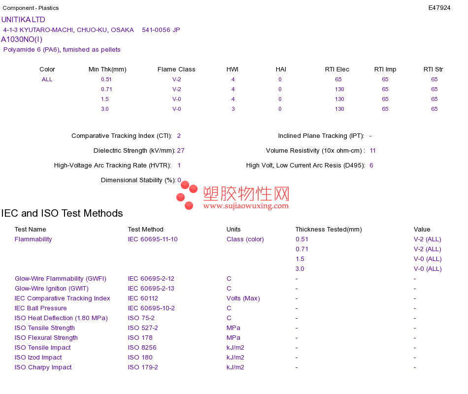 Polyamide 6 (PA6) A1030NO(I)UL黄卡资料请登陆会员后查看,如需电子档资料,请联系客服! 赵生:手机13424755533;QQ:27660005
