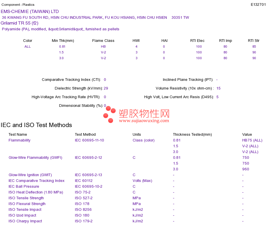 Polyamide (PA) Grilamid TR 55 (f2)UL黄卡资料请登陆会员后查看,如需电子档资料,请联系客服! 赵生:手机13424755533;QQ:27660005