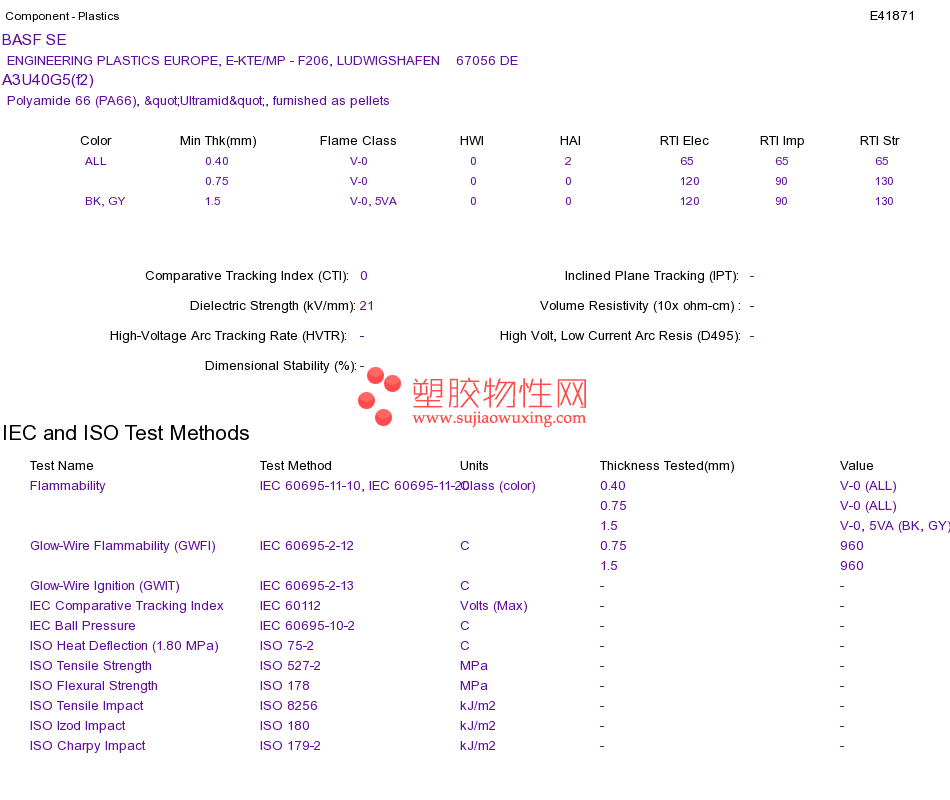 Polyamide 66 (PA66) A3U40G5(f2)UL黄卡资料请登陆会员后查看,如需电子档资料,请联系客服! 赵生:手机13424755533;QQ:27660005