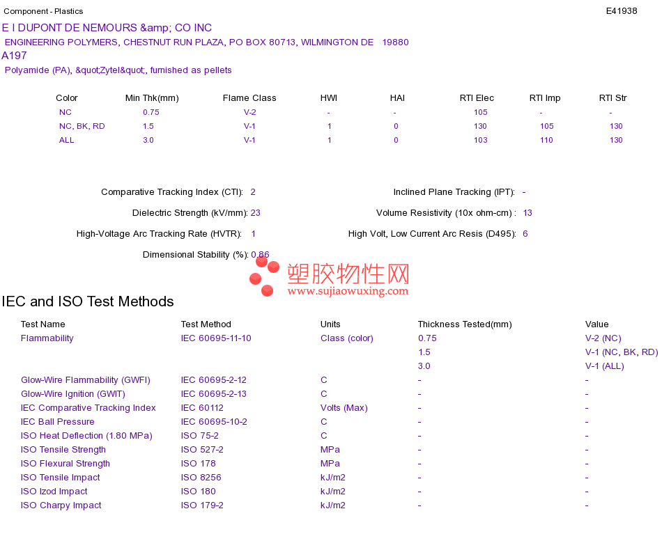 Polyamide (PA) A197UL黄卡资料请登陆会员后查看,如需电子档资料,请联系客服! 赵生:手机13424755533;QQ:27660005
