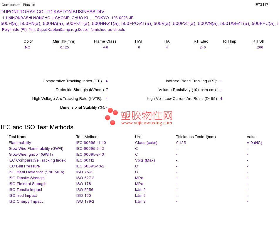 Polyimide (PI) 500H(a), 500HN(a), 500HA(a), 500H-ZT(a), 500HN-ZT(a), 500FPC-ZT(a), 500V(a), 500PST(a), 500VN(a), 500TAB-ZT(a), 500FPC(a), 500FPC-A(a), 500TN(a)UL黄卡资料请登陆会员后查看,如需电子档资料,请联系客服! 赵生:手机13424755533;QQ:27660005