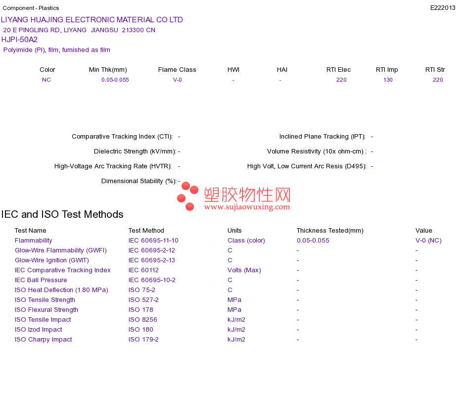 Polyimide (PI) HJPI-50A2UL黄卡资料请登陆会员后查看,如需电子档资料,请联系客服! 赵生:手机13424755533;QQ:27660005