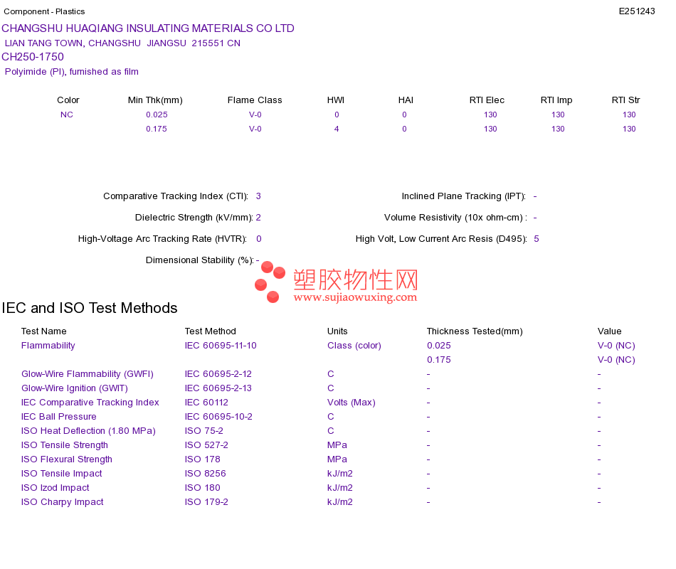 Polyimide (PI) CH250-1750UL黄卡资料请登陆会员后查看,如需电子档资料,请联系客服! 赵生:手机13424755533;QQ:27660005