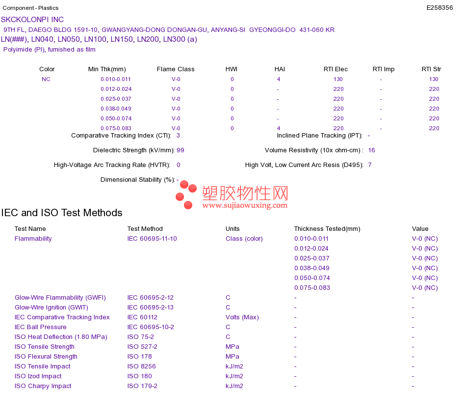 Polyimide (PI) LN(###), LN040, LN050, LN100, LN150, LN200, LN300 (a)UL黄卡资料请登陆会员后查看,如需电子档资料,请联系客服! 赵生:手机13424755533;QQ:27660005