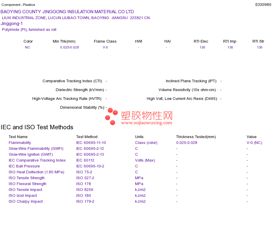 Polyimide (PI) Jinggong-1UL黄卡资料请登陆会员后查看,如需电子档资料,请联系客服! 赵生:手机13424755533;QQ:27660005