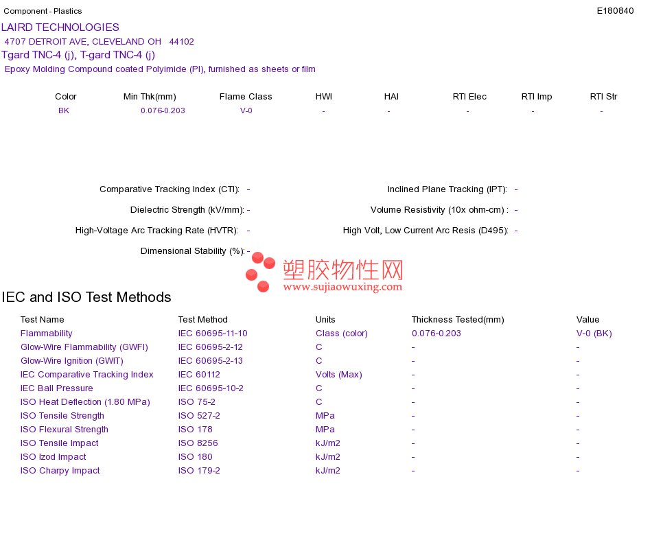 Epoxy Molding Compound coated Polyimide (PI) Tgard TNC-4 (j), T-gard TNC-4 (j)UL黄卡资料请登陆会员后查看,如需电子档资料,请联系客服! 赵生:手机13424755533;QQ:27660005