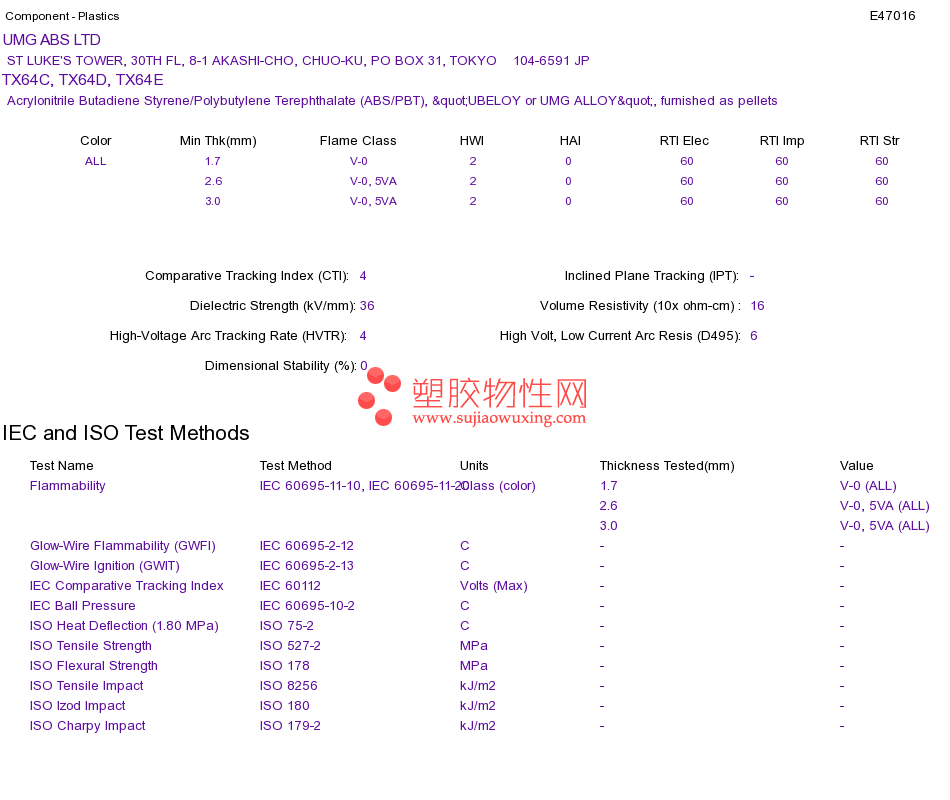 Acrylonitrile Butadiene Styrene/Polybutylene Terephthalate (ABS/PBT) TX64C, TX64D, TX64EUL黄卡资料请登陆会员后查看,如需电子档资料,请联系客服! 赵生:手机13424755533;QQ:27660005