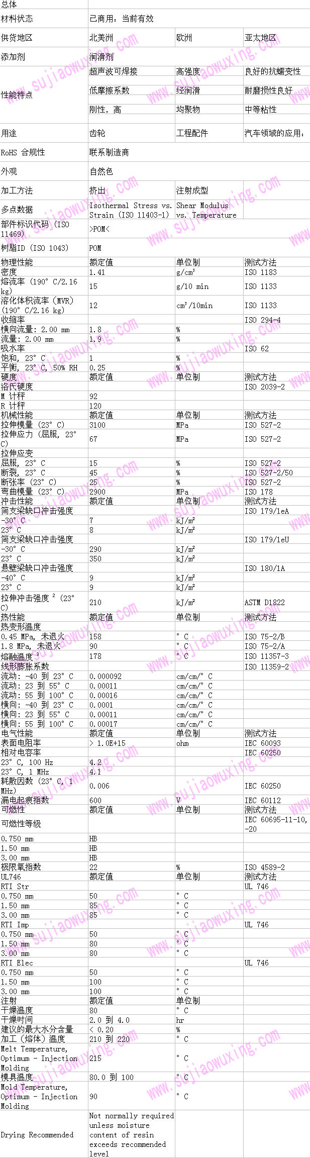 更多Delrin POM 500CL NC010物性表资料见附件: