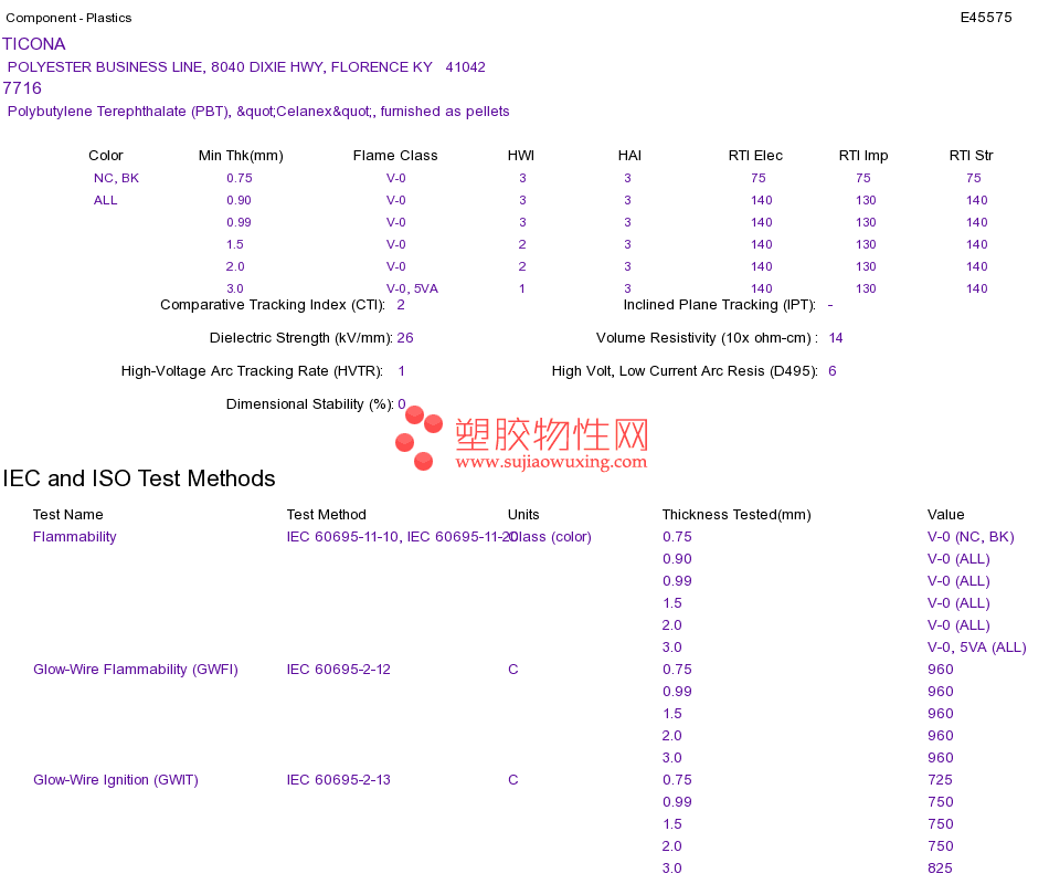 Polybutylene Terephthalate (PBT) 7716UL黄卡资料请登陆会员后查看,如需电子档资料,请联系客服! 赵生:手机13424755533;QQ:27660005