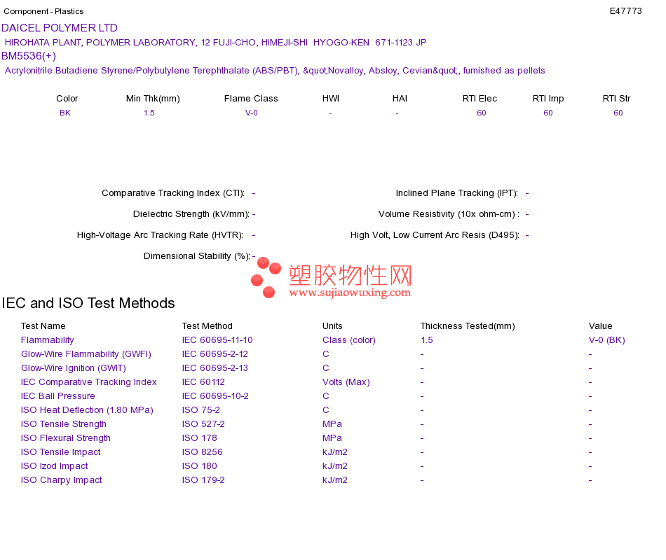 Acrylonitrile Butadiene Styrene/Polybutylene Terephthalate (ABS/PBT) BM5536(+)UL黄卡资料请登陆会员后查看,如需电子档资料,请联系客服! 赵生:手机13424755533;QQ:27660005