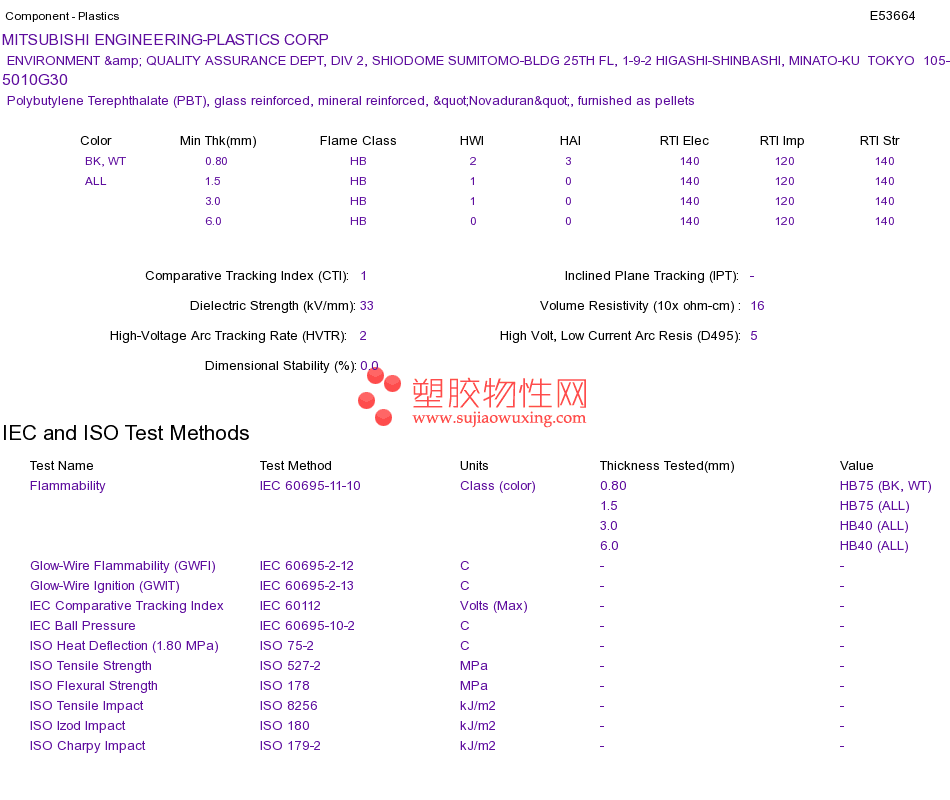 Polybutylene Terephthalate (PBT) 5010G30UL黄卡资料请登陆会员后查看,如需电子档资料,请联系客服! 赵生:手机13424755533;QQ:27660005